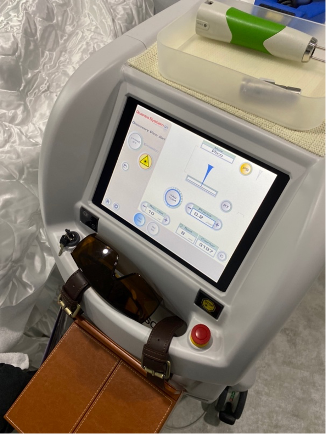 有上網爬過文知道皮秒雷射的發數很重要要打滿2200發以上,去斑去痘疤效果才出得來。這間新開幕的診所的皮秒雷射就有強調一定打滿2200發以上,而且有包含蜂巢,所以可以改善痘疤、斑點,提亮肌膚跟改善毛孔粗大的問題。最後在打完雷射醫師也有說明今天打的發數是多少,他們也很大方直接讓我拍了發數(這台就是探索皮秒),真的打超過2200發~